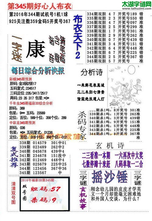 【玩彩老头】3D彩票第345期预测胆码+杀号