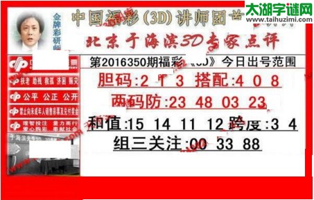 于海滨专家点评16350期福彩3d图谜:胆码213,搭配408