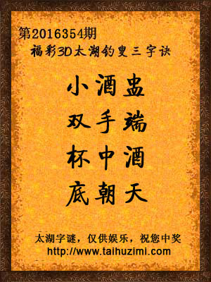 2016年福彩3d第354期太湖钓叟字谜:小酒盅,双手端,杯中酒,底朝天