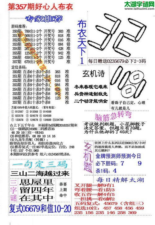 3d16357期:好心人布衣图谜