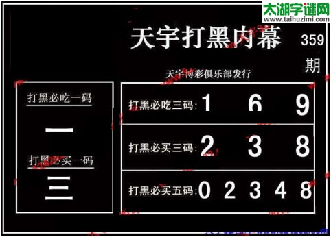 3d359期:天宇图谜(胆码杀号+必买五码)