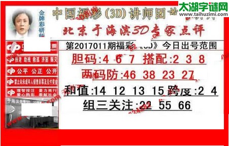 于海滨专家点评2017011期3d图谜:胆码467,搭配238
