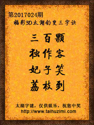 2017年福彩3d第024期太湖钓叟字谜:三百颗,独作客,妃子笑,荔枝到