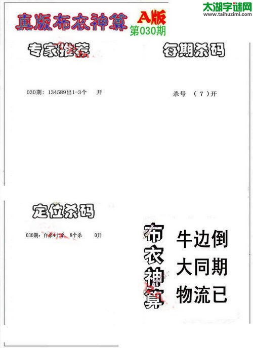 3d17030期:真版布衣神算AB版图库