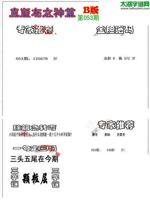 3d17053期:真版布衣神算AB版图库