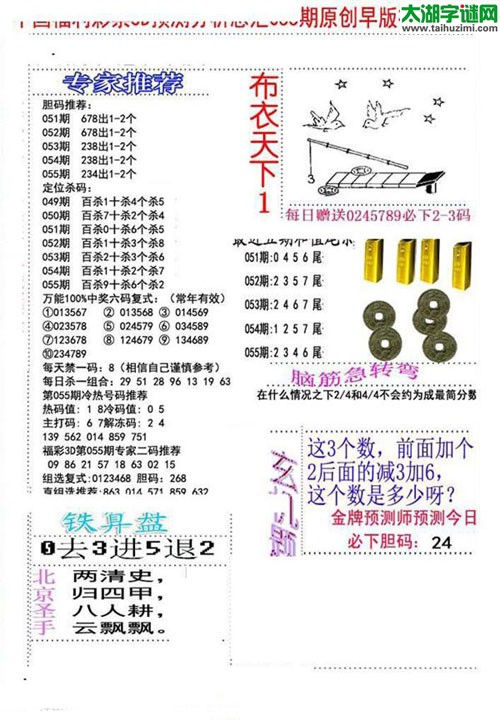 3d17055期:早版布衣天下图谜