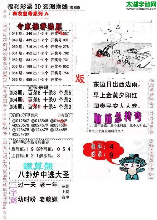3d17055期:福彩3D字谜汇总