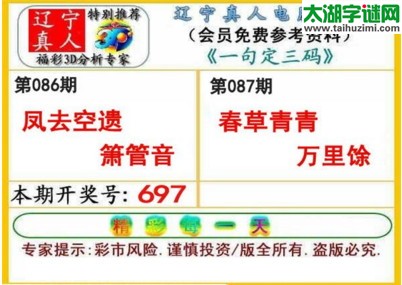 3d087期:辽宁真人一句定三码(胆码图)