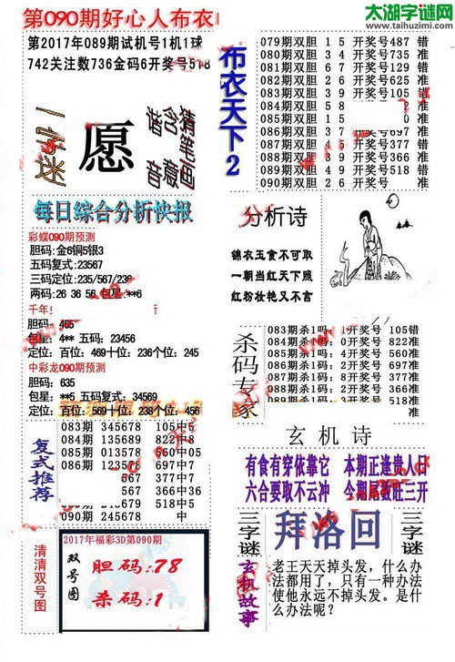 3d17090期:好心人布衣天下图谜
