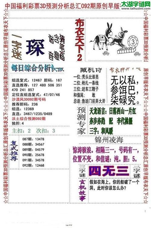 3d17092期:哥德巴赫猜奖解析八卦虎诗谜