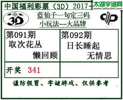 蓝仙子一句定三码第2017092期3D图谜:日长睡起 无情思