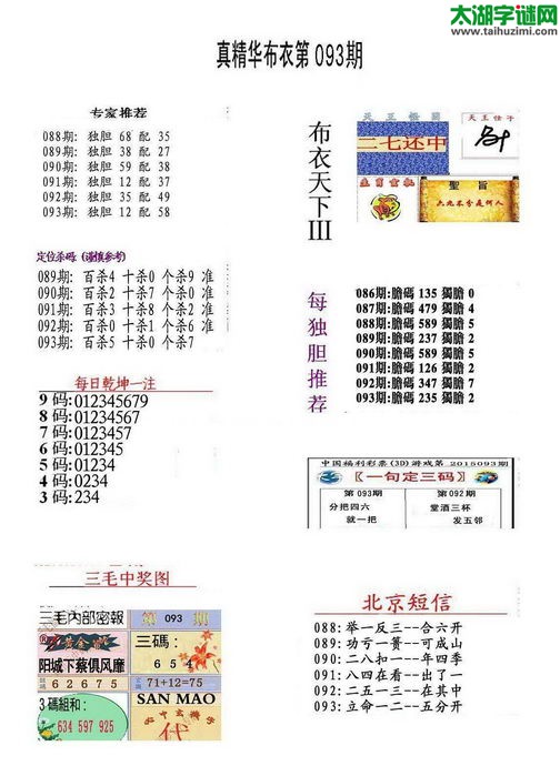3d17093期:真版布衣神算AB版图库