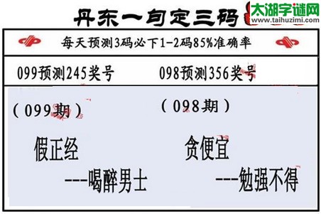 福彩3d第17099期丹东一句定三码:假正经--喝醉男士,预测号245