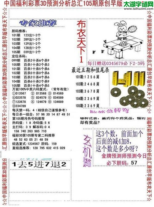 3d17105期:早版布衣天下图谜