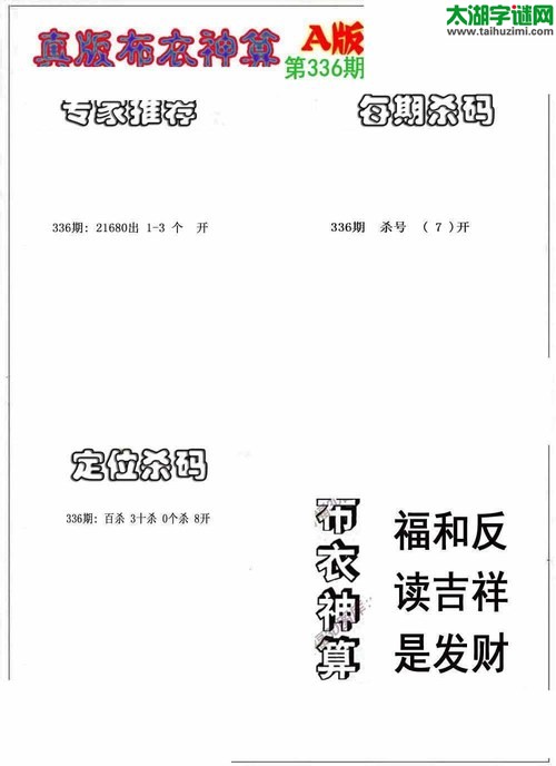 3d17336期:真版布衣神算AB版图库