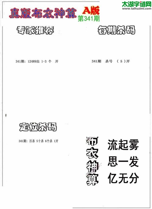 3d17341期:真版布衣神算AB版图库