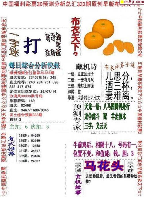 3d18333期:早版布衣天下图谜