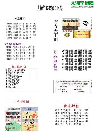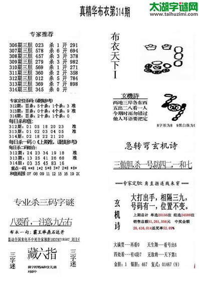 福彩3d第314期雪皮解太湖字谜 擎天柱
