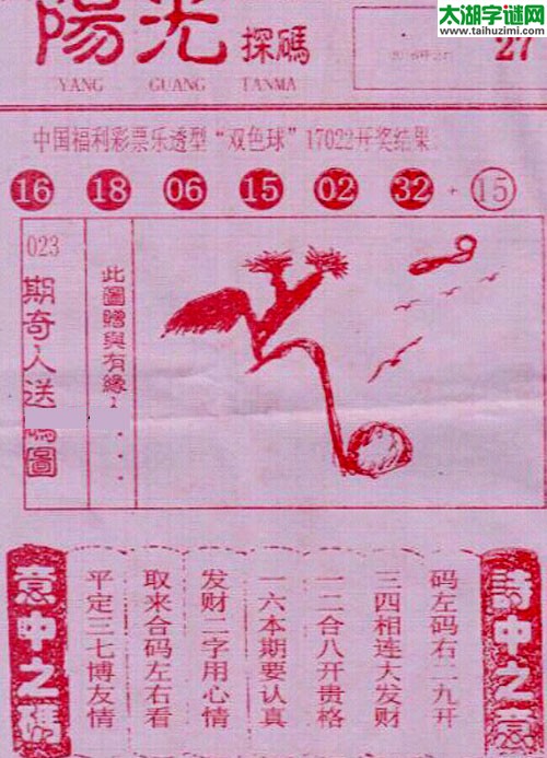 双色球2017023期:彩民乐与阳光探码图