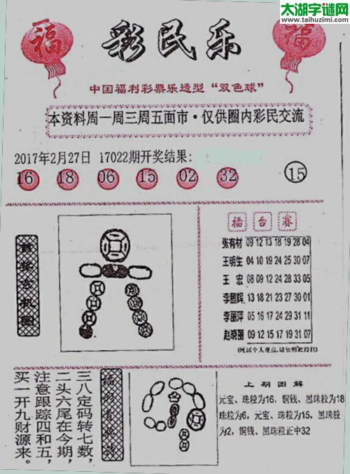 双色球2017022期:彩民乐与阳光探码图