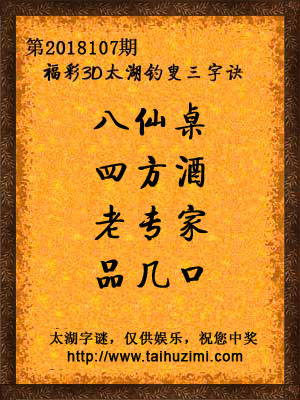 福彩3d第18107期太湖字謎:八仙桌,四方酒,老专家,品几口