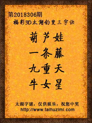 福彩3d第18306期太湖字謎:葫芦娃,一条藤,九重天,牛女星