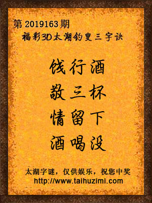 3d163期太湖字谜:饯行酒,敬三杯,情留下 ,酒喝没