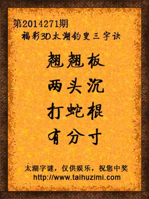 2014年福彩3d第271期太湖钓叟字谜: