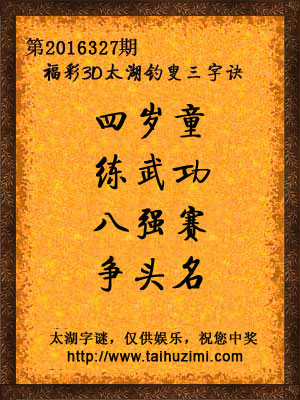 2016年福彩3d第327期太湖钓叟字谜:四岁童,练武功,八强赛,争头名