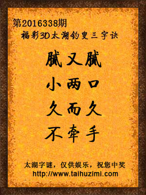 2016年福彩3d第338期太湖钓叟字谜:腻又腻,小两口,久而久,不牵手
