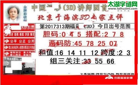 于海滨专家点评17313期3d图谜:胆码045,搭配278