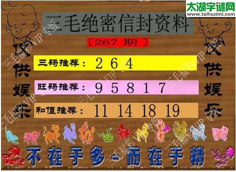 3d267期:天宇图谜(胆码杀号+必买五码)
