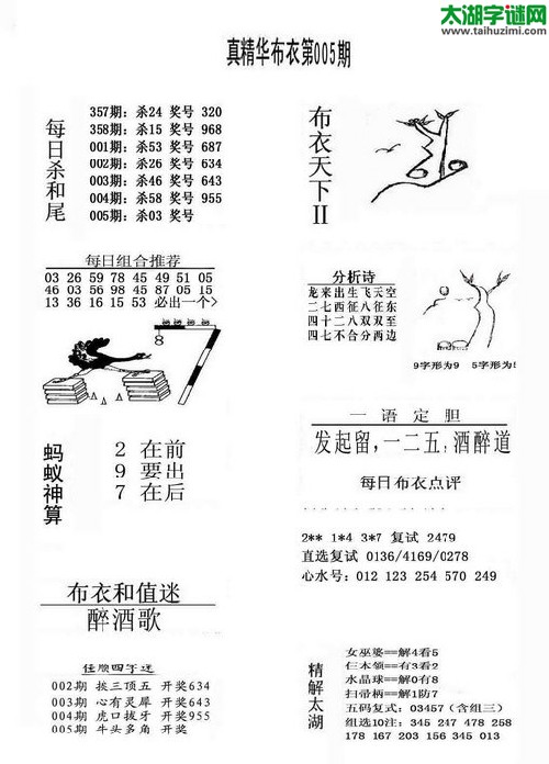 【45号】猜3d太湖钓叟14005期3d字谜解析