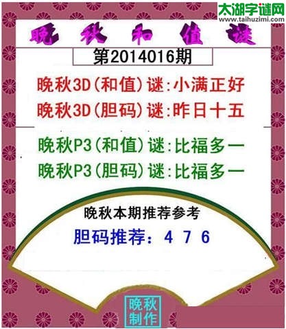 2014016期3D 晚秋和值)谜:小满正好 D:昨日十五