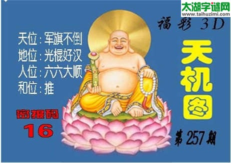 北盟天机图257期:天位军旗不倒,地位光棍好汉,人位六六大顺,和位推;密报号码:16;