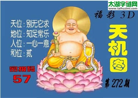 北盟天机图272期:天位别无他求,地位知足常乐,人位一心一意,和位贰;密报号码:57;