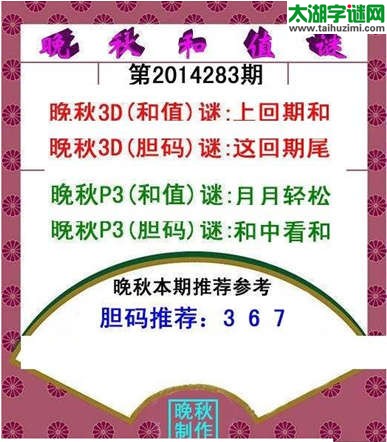 2014283期3D 晚秋和值谜:上回期和 D:这回期尾