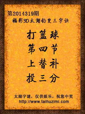 2014年福彩3d第319期太湖钓叟字谜:打篮球,第四节,上替补,投三分