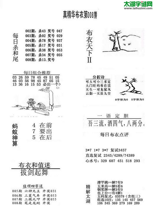 3d15008期:早版布衣天下图谜