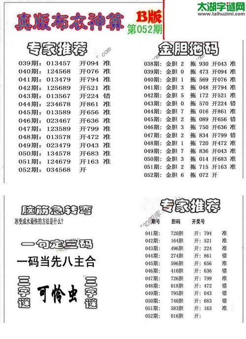 思进解太湖052期福彩3d预测号码