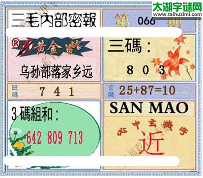 【三毛图谜066期】信封资料三码推荐749,三毛内部密报:803;