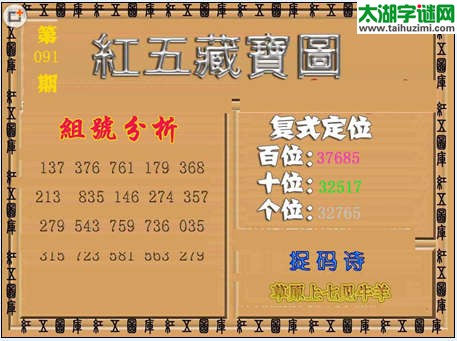 天门解太湖2015091期3d字谜