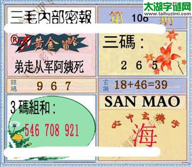 【三毛图谜106期】信封资料三码推荐187,三毛内部密报:265;