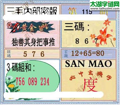 【三毛图谜115期】信封资料三码推荐756,三毛内部密报:867;