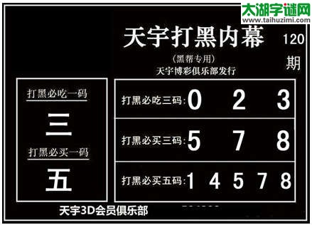 3d120期:天宇图谜(胆码杀码-一句定三码)