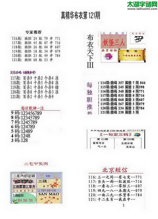 湘西人解太湖121期3d字谜【二进宫,三叩