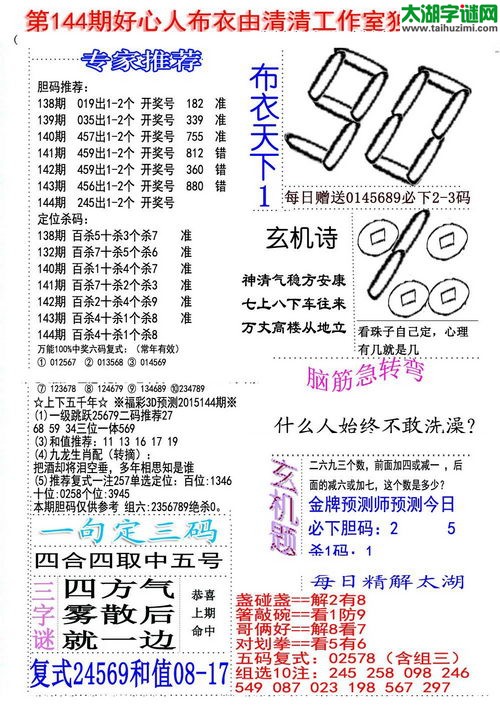 3d15144期:小糊涂+老糊涂+侠客字谜