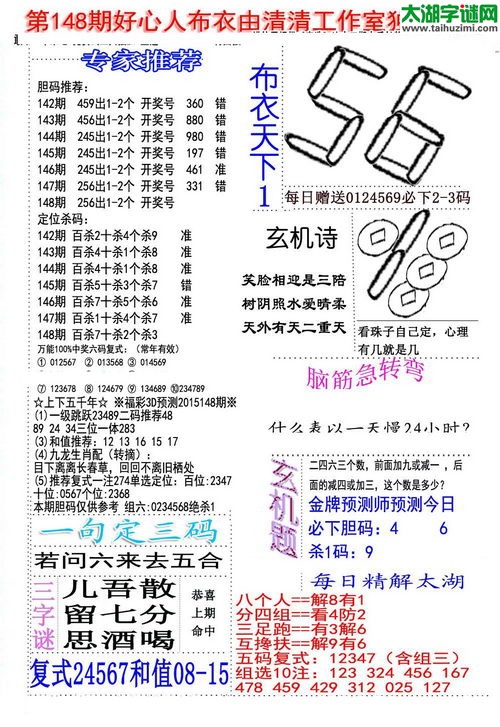 3d15148期:锦州凌海+黑圣手+太阳红字谜