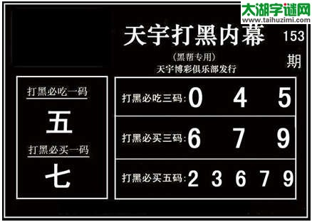 3d153期:天宇图谜(胆码杀号+必买五码)