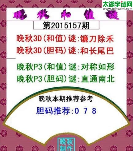 2015157期3d晚秋和值谜:镰刀除禾 D:和长尾巴